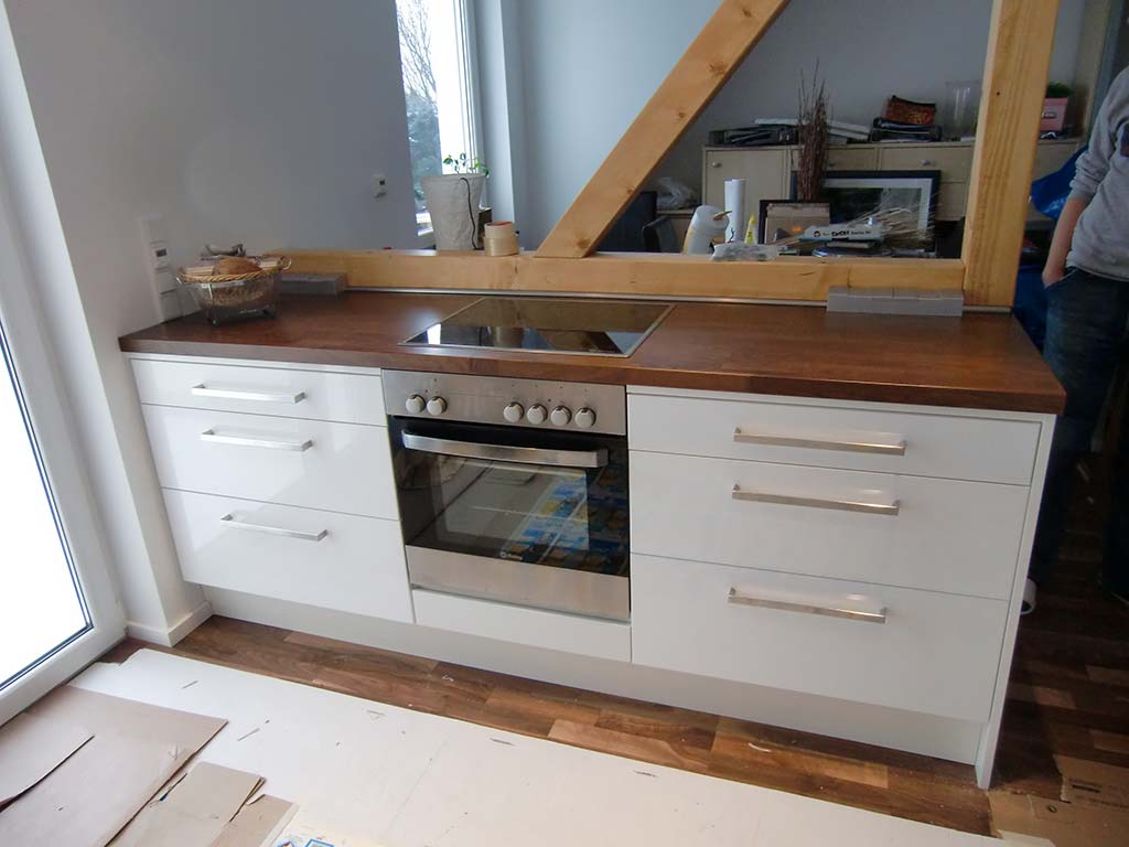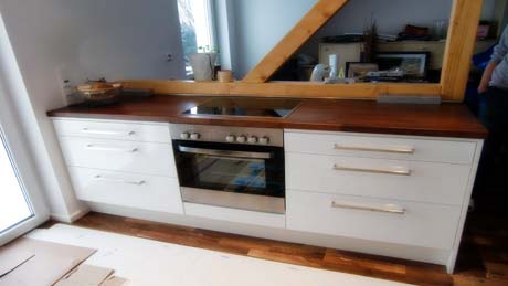 Küchenzeile Arbeitsplatte Buche massiv gebeitzt